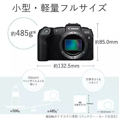 The Canon EOS RP is Canon's lightest and most compact full-frame mirrorless camera body, featuring a 26.2MP CMOS sensor and DIGIC 8 image processor. Ideal for stepping into full-frame photography or for content creators, it offers impressive image quality, UHD 4K video recording, Dual Pixel CMOS AF with Eye Detection, and a vari-angle touchscreen, all in a highly portable design.